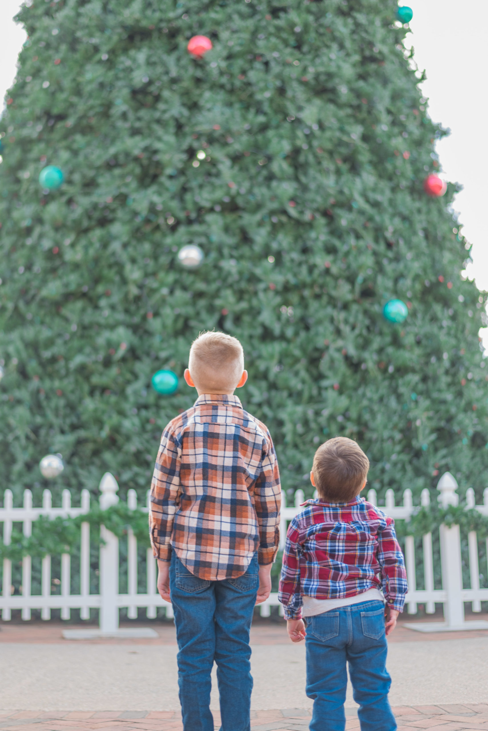 Bobby actually surprised Emily with this session for her birthday last month and her dream was to have a session filled with Christmas decor. I think we pulled it off spectacularly -but it almost didn’t happen! This was the same weekend as the tree lighting at Austin Landing, which could have proved disastrously busy. We moved to a nearby park to avoid the crowds and decided to head to Austin Landing later with the hope we could make it work. And it was amazing! Not only was the park a perfect starting place, but the tree at Austin landing was up, decorated, and EMPTY of crowds! Take a peek at how incredible this family session was….